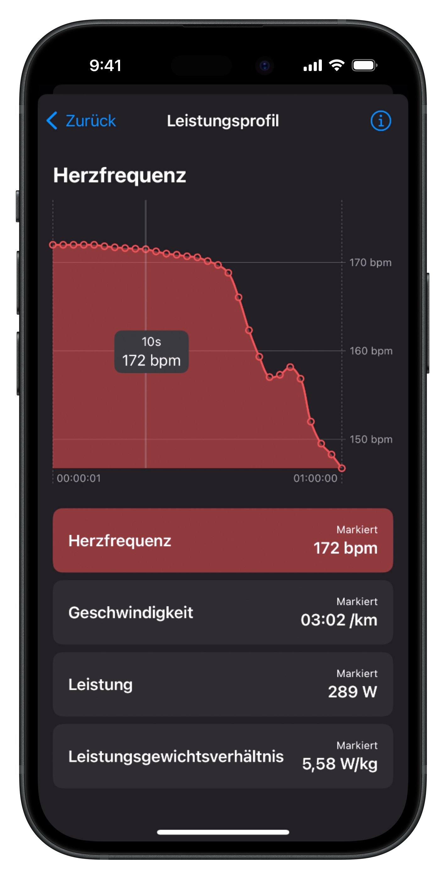 Die sportartspezifischen Leistungsprofile geben dir Aufschluss über die erbrachte Leistung für unterschiedliche Zeitintervalle.